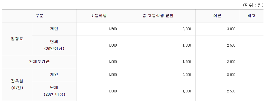 ➡️ 홍대용 과학관 이용요금 안내 ⬅️