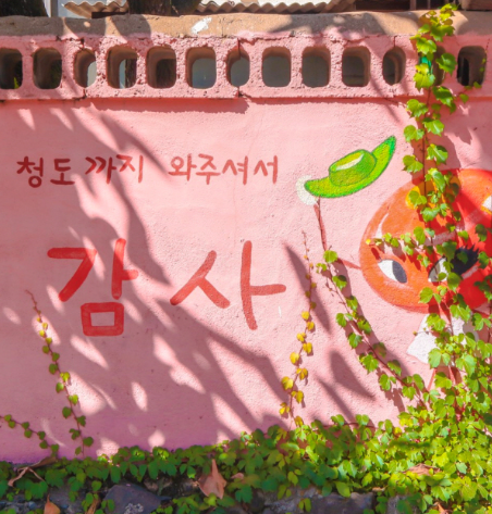 남성현역 주차장 앞에 위치한 다도리벽화마을은 2016년 반시벨리 벽화마을로 조성되었습니다. 청도의 특산물인 씨앗 없는 반시에서 이름을 따온 이 마을은, 주민들의 삶의 이야기와 가훈 등을 재치 있는 그림으로 담아내고 있습니다. 벽화 앞에서는 천사가 되어보거나, 겨울왕국의 엘사가 익살스럽게 감을 던지는 사진을 찍을 수 있는 포토존도 마련되어 있습니다. 청도 감꽃길 제1코스인 남성현역에서 시작해 다도리벽화마을, 떼루아 드라마 세트장, 청도와인터널까지 가볍게 걸으며 즐기기 좋은 코스입니다.