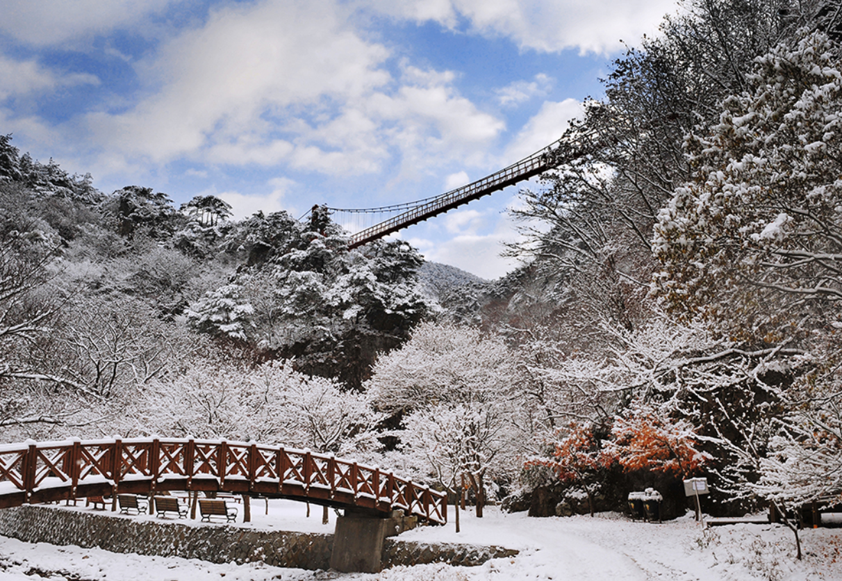 강천산군립공원은 ‘호남의 소금강’이라 불릴 만큼 빼어난 절경을 자랑하는 명소입니다. 가을철에는 단풍이 산 전체를 붉게 물들이고, 봄에는 산벚꽃이 흐드러지게 피어 사계절 모두 아름다운 풍경을 즐기실 수 있습니다. 잘 정비된 등산로와 산책로가 있어 가족, 연인, 친구와 함께 가볍게 산책하거나 본격적인 등산을 즐기기에도 좋습니다. 특히 구장군 폭포, 병풍바위, 전망대 등 곳곳의 명소가 빼놓을 수 없는 볼거리입니다.